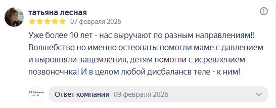 Я хожу туда уже давно. Точнее ходим всей семьей. Уже привыкли, что всевозможные проблемы со здоровьем можно решить именно здесь. Все боли в ногах, позвоночнике, мышечное напряжение убираются за 2-3 посещения. Я с юности мучилась сильными головными болями. Обследовалась у разных специалистов, пила таблетки – результата не было. К сорока годам таблетки вообще перестали помогать, привыкла жить с постоянной болью. А оказалось, что эта проблема легко решается посещением остеопата. Теперь для меня головная боль – сигнал, что пора идти на прием. Хожу примерно раз в год для профилактики, как и к стоматологу. Мужу вылечили сильнейшее искривление позвоночника. Недавно после сильной физической нагрузки у него заболела нога в лодыжке. Стал сильно хромать. Сначала пошел к хирургу, думал, что травмировал ногу. Рентген показал воспаление сустава. В течение месяца пил лекарства, ходил на физиотерапию и хромал. Потом пришел на прием к остеопату совсем по другому поводу (разболелась поясница), а оказалось, что проблема общая – «перекосило» все тело и возникла чрезмерная нагрузка на сустав, а потом и на поясницу. После посещения остеопата все прошло. А так бы и хромал себе дальше всю жизнь.