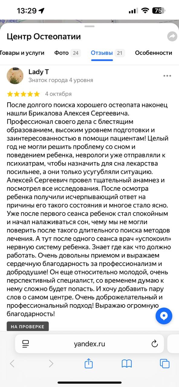 Очень хочется поделиться своим опытом общения с Центром Остеопатии под руководством Гончаровой Екатерины Борисовны.